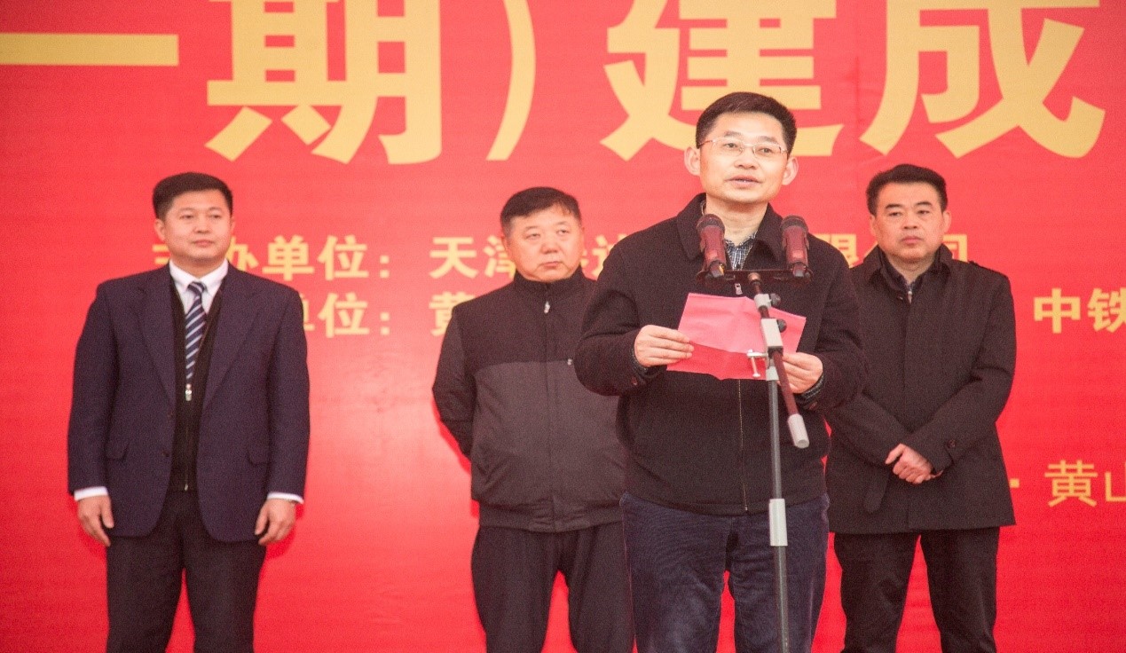 黃山市市委副書記、市長孔曉宏,黃山市副市長楊龍,天津泰達(dá)股份有限公司黨委書記、董事長胡軍,中鐵四局集團(tuán)有限公司黨委書記、董事長張河川,天津泰達(dá)股份有限公司紀(jì)委書記付強(qiáng)、總經(jīng)濟(jì)師彭瀚、財(cái)務(wù)總監(jiān)趙春燕,天津泰達(dá)環(huán)保黨總支書記滕丹、天津泰達(dá)環(huán)保有限公司副總經(jīng)理陳艷國及黃山市三區(qū)四縣等相關(guān)領(lǐng)導(dǎo)、黃山泰達(dá)環(huán)保有限公司、中鐵四局有限公司、安徽電建二公司等參建單位和周邊鄉(xiāng)鎮(zhèn)嘉賓等200余人共同見證了本次啟動儀式。