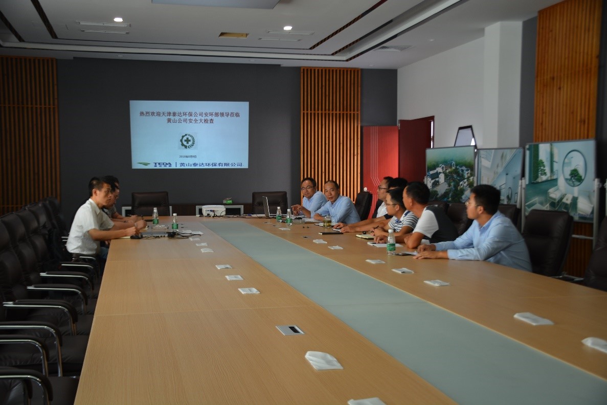 2018年8月9日,為貫徹落實泰達股份下發(fā)的《關(guān)于泰達環(huán)保調(diào)試投產(chǎn)項目安全生產(chǎn)工作》的意見,天津泰達環(huán)保有限公司安環(huán)部部長錢振杰一行赴黃山項目進行了安全檢查。錢振杰部長等人聽取了關(guān)于黃山項目工程安全近況及下半年安全工作計劃的匯報,并對施工現(xiàn)場和安全資料進行了詳細檢查。